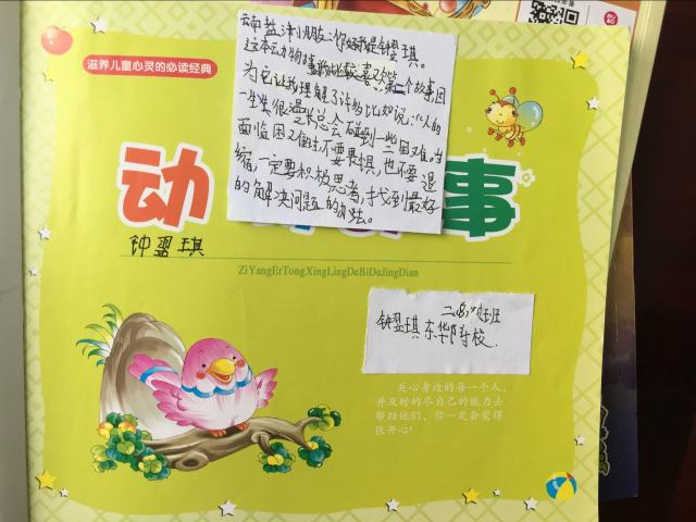 一推开团队室的门,只见一叠一叠的书整齐地摆放着,小伙伴们个个手里拿着笔,坐在书堆里“刷刷刷”地往书本上写祝福语。我也拿起笔,打开书,认认真真地把想对盐津小朋友说的祝福语写在书籍扉页上。正午的阳光调皮地从窗口照进来,正投影在书本上,手中的书儿除了散发出纸张特有的芬芳,还沾上了阳光的味道,照得人心里也暖洋洋的。五六个孩子和一位老师坐拥在书中,时而说笑,时而静谧,时而被好书吸引情不自禁地阅读起来,时而又摇头晃脑,希望写出世界上最美的祝福……真希望时光在这一刻停驻。