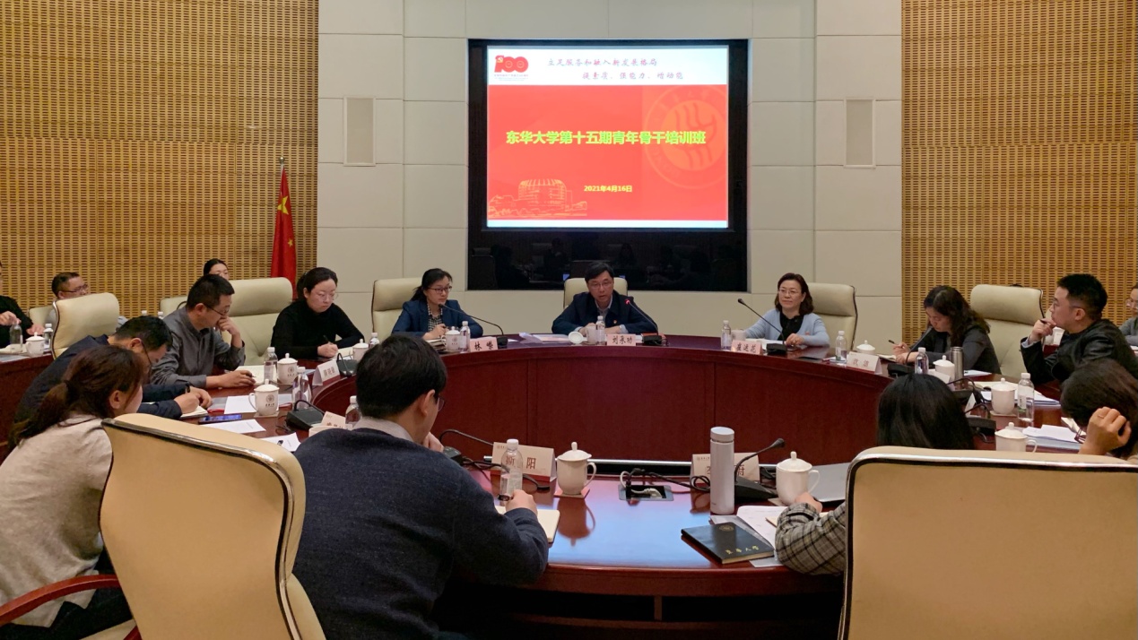刘承功在讲话中指出,学校召开第十五期青年骨干培训班是学校立足“十四五”开局、建强干部骨干队伍、谋划高质量发展的重要举措。刘承功结合学习领会习近平总书记系列重要讲话指出,要深刻认识当前学校事业发展的形势任务,统筹当前国际国内纷繁复杂的大局环境,把握主要矛盾、保持战略定力、坚定发展自信,在正确分析“时与势”中,将心怀“国之大者”的认识转化为推动解决问题的能力,进一步激发各级干部、骨干立足推动学校更高质量创新发展,在强化国家战略科技力量、服务国家创新体系布局中展现东华作为。