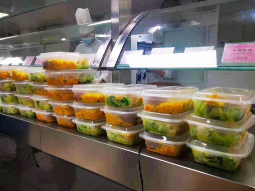 “真的很感谢学校,今天中午有最爱吃的鸡腿。”一位同学的朋友圈中晒出了今天的午餐,鸡腿、辣子鸡、炒包菜以及一份米饭。每到饭点,同学们的朋友圈就化身为大型“拆盲盒”现场,昨天你收到的是土豆鸡块、红烧肉,今天我收到的是鸡腿、四喜丸子。在同学们“拆盲盒”的背后,是全体餐饮人连续的坚守,是他们成倍增长的工作量以及昼夜颠倒的作息时间。“没事,为了同学们,一切都值得!”